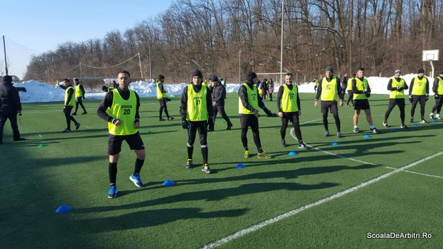 In cea de-a doua zi a cursului organizat de Comisia Centrala a Arbitrilor, arbitrii si arbitrii asistenti din prima liga au sustinut testarea fizica. Aceasta a avut loc pe terenul sintetic din incinta Centrului National de Fotbal Mogosoaia, in prezenta presedintelui CCA.